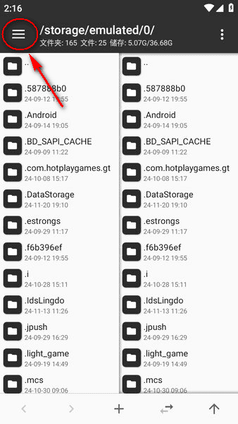1、打开MT管理器,点击左上角的菜单按钮