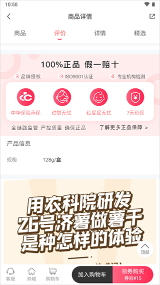 在商品详情页面中出现【正品保障】字样就属于正品了