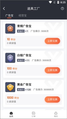 2、在打开的道具工厂页面中把积分兑换为对应广告宝