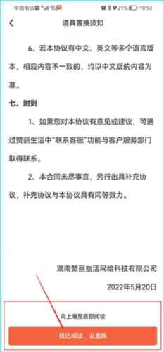 4、拉到页面底部,等待几秒钟,点击“我已阅读,去置换”
