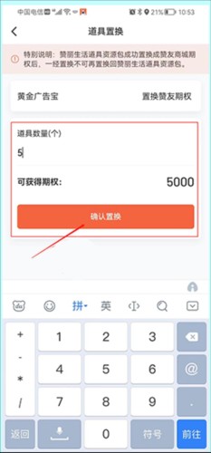 5、输入要置换的广告道具数量,点击“确认置换”