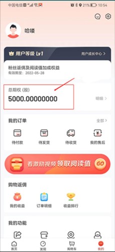 7、打开赞丽生活APP,在“我的”页面,查看到账的期权(股)