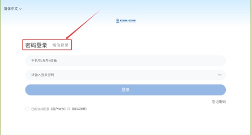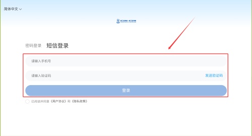 3、若选择短信登录,输入手机号并获取验证码,填写后即可登录。