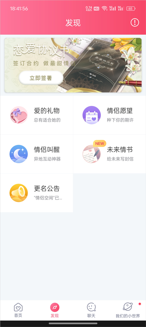 1、进入恋人空间App后点击下方导航栏的发现