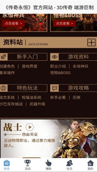 传奇永恒助手这是一款专门为传奇游戏打造的游戏助手应用,通过这款助手大家都是能够获取到全部的攻略以及玩法的,平台的官方活动也是会直接为大家展示,您也是能够享受到便捷的使用体验,通过绑定角色还可以浏览角色信息,想要了解更多的朋友现在就来下载吧!