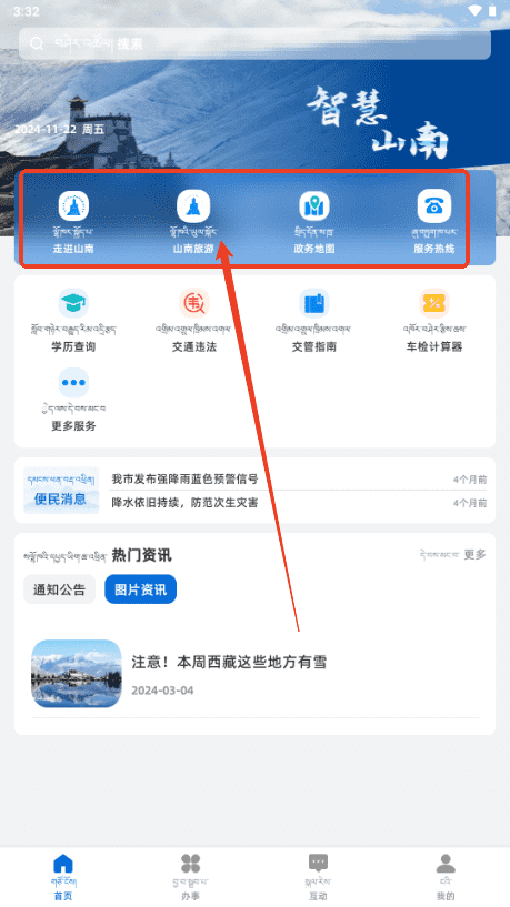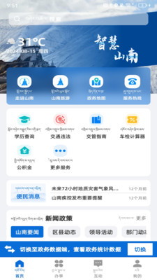 2、进入软件后我们可以看到政务主页,在这里可以了解山南市的一些基本情况;