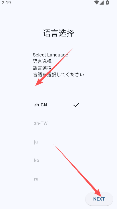1、在乐乐游戏下载安装好软件以后打开,然后选择语言进入下一个环节。
