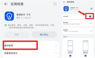 2、点击“通知管理”,确认“允许通知”已开启。