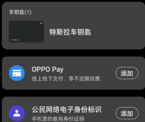 据介绍,OPPO Find X5/Pro、Reno7Pro等机型用户可在「钱包-首页下拉-车钥匙添加-特斯拉-跳转特斯拉App-安全性-绑定手机钥匙卡」完成设置,靠近车辆即可自动解锁。
