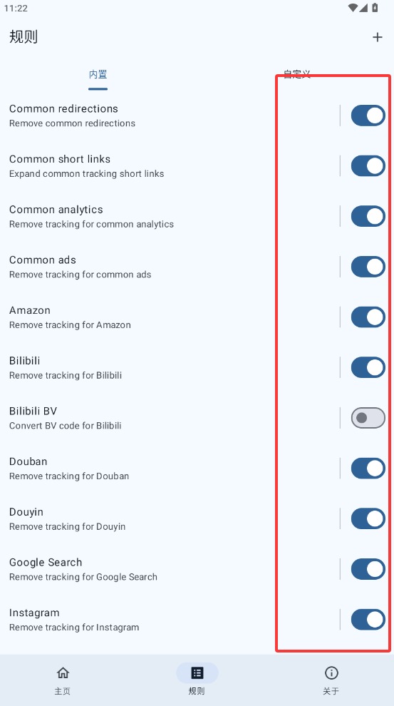 自定义规则:进入App的“规则”页面,点击右上角“+”号,通过JavaScript代码或正则表达式添加自定义规则。例如,针对特定平台(如社交媒体、电商平台)的追踪参数,可设置专属过滤规则,实现更精准的净化。
