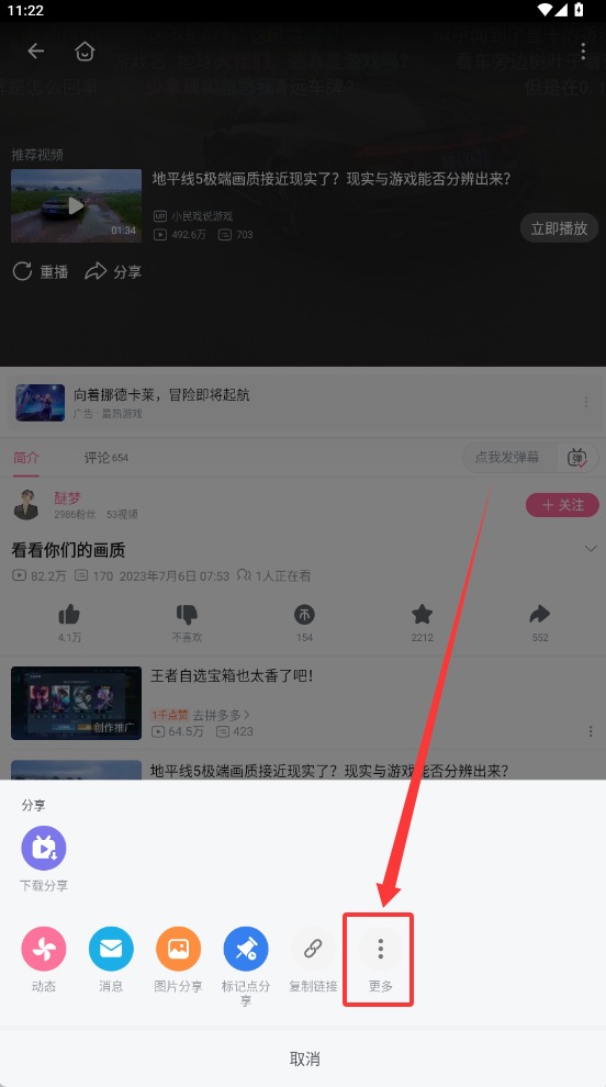 3.要使用的话,这里以b站分享为例子,点击分享后的更多选项