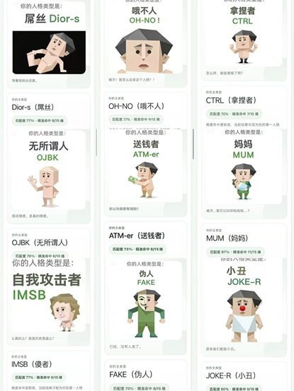 SBTI:使用27种荒诞、自嘲的标签,如“死者”“狗屎人”“吗喽”等,无积极含义,旨在调侃而非定义人格。