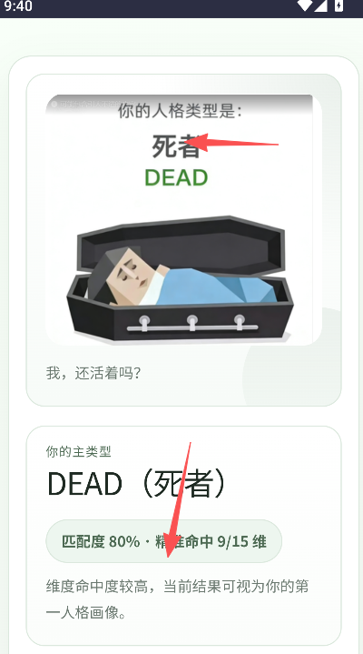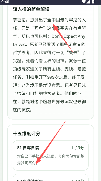 和MBTI测试基于心理学划分人格不同,SBTI测试用诙谐、略带自嘲的口吻,来形容你的“人格”,比如“死者”、“伪人”、“送钱者”、“吗喽”等。因此你无需把SBTI当成正经的人格测试,当成一个小游戏会更合适。