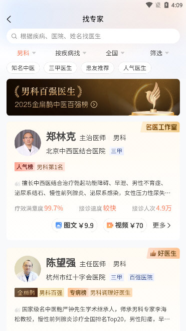 注意:部分医生可能来自合作医院(如汉典中医医院),其处方可直接通过医保结算。