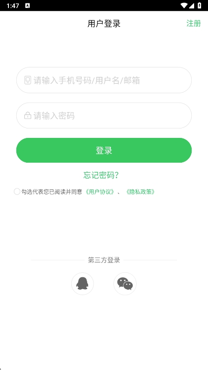 新用户注册:打开APP后点击“新用户注册”,输入手机号、邮箱、密码等信息完成注册。若已有账号,直接输入账号密码登录。