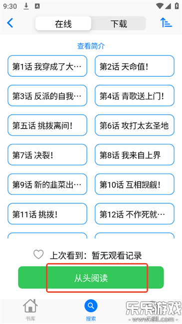 2.找到感兴趣的作品后点击进入,点击“从头阅读”或是点击其中一个章节开始阅读
