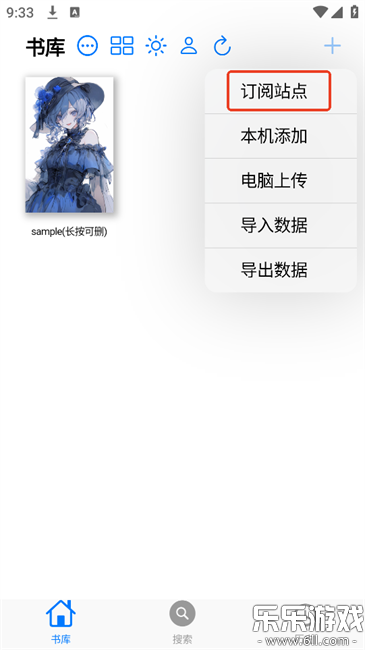打开MangaBoya后,点击首页或书库页面右上角的 「+」号,选择 「订阅站点」 选项。