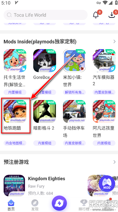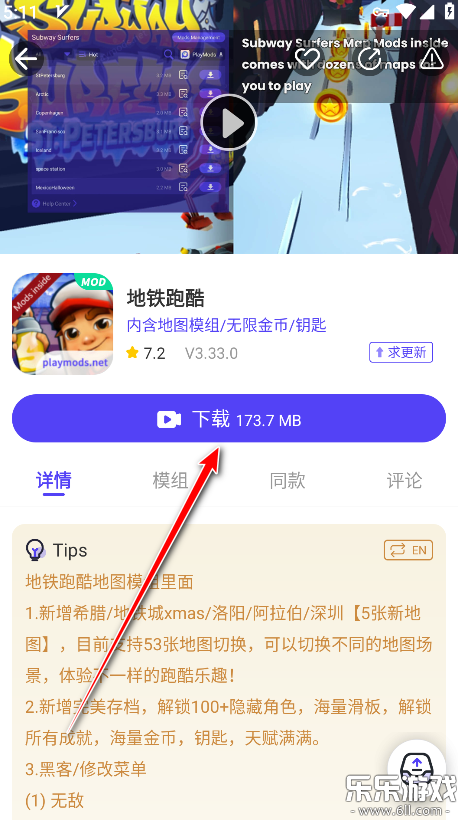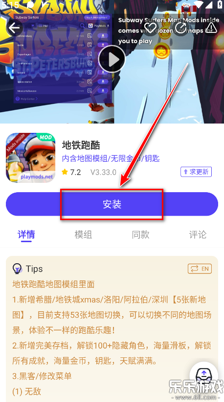 1.打开playmods,点击自己想玩的游戏。小编以地铁跑酷做演示,如下图所示。