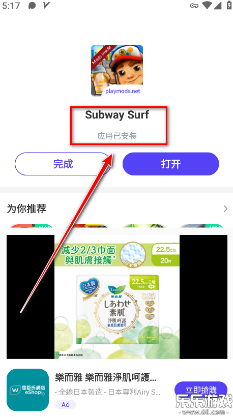 7.如下图所示,已经显示地铁跑酷游戏安装成功啦。
