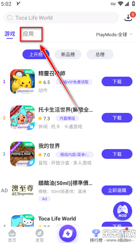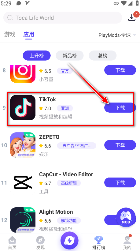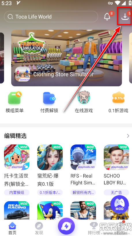 1.打开playmods,点击右上角下载标志的位置。
