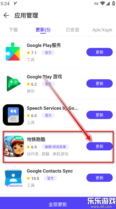 3.点击游戏后面的更新。