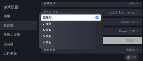控制游戏可使用的CPU核心数量: