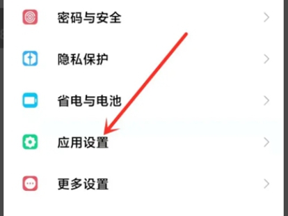 1、进入手机设置界面,点击【应用设置】,进入应用设置界面。