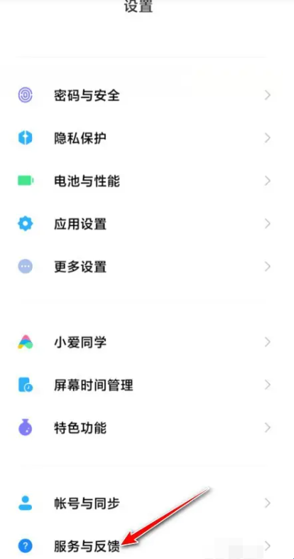 1、进入手机设置,滑到页面的最下方,点击进入服务与反馈。