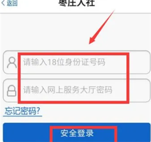 1、登录界面,输入身份证和密码,点击“安全登录”。