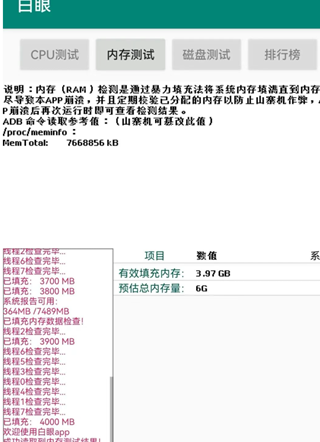 内存测试:通过暴力填充系统运行内存的方式来判别真正运行内存。