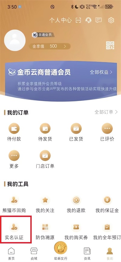 1、商品购买时用户需进行实名认证,打开软件在"我的"界面,点击下方实名认证;