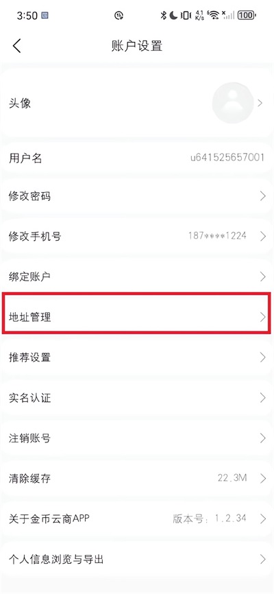 2、找到下方的"地址管理"并点击;
