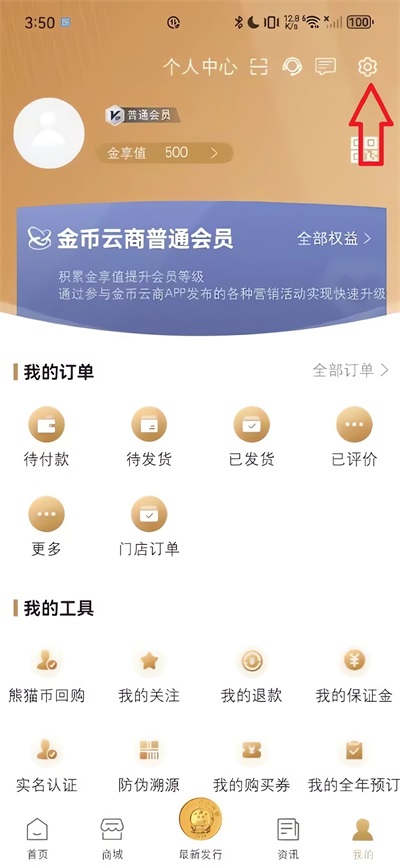 1、下载金币云商app打开,点击我的