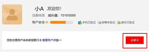 第四步:返回商城PC端“会员中心”,点击“去绑卡”