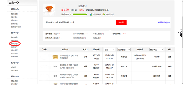 第二步、进入会员中心首页,点击“账户安全”