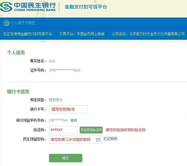 温馨提示:有极个别银行卡在绑定卡时需要向民生账户汇一笔款