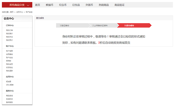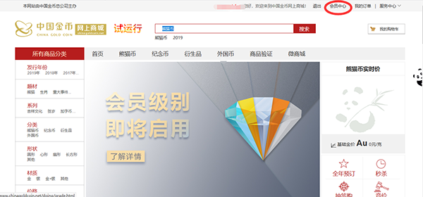 第一步:建议使用谷歌、搜狗、火狐、IE9等浏览器登陆商城PC端(http://www.chinagoldcoin.net),进入“会员中心”,点击“立即开通”