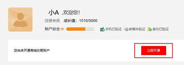 2、交易会员开户绑卡前提条件必须是商城的实名会员,否则不会有立即开通入口