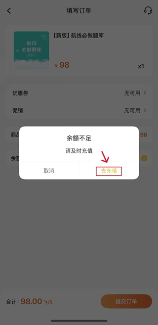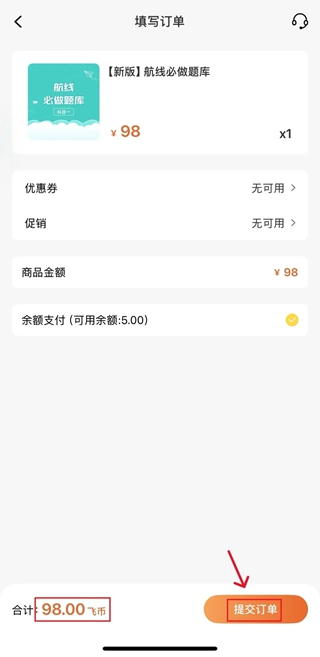 ④ 返回购买页用飞币下单题库直接抵扣付款