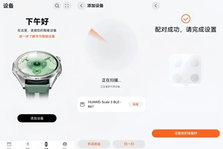 1、配对设备打开手机蓝牙,登录【华为运动健康】APP,点击首页“添加设备”,搜索并绑定对应华为体脂秤,完成一键配对;