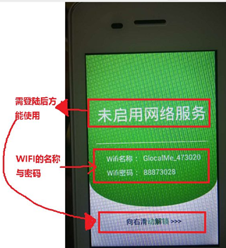 步骤二:首页面会显示WIFI名称与密码,但需登陆后才使用,向右滑动解锁