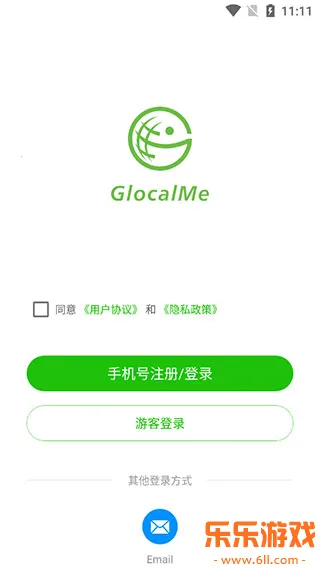 1、在本站下载安装好吉客猫GlocalMe之后,点击进入,根据指引完成注册并登录账户(可使用手机号码或邮箱注册)。