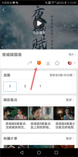 用户在进入想要追剧的电视剧播放画面中点击其播放画面下面的追剧按钮(下图红色箭头所指区域)将其处于开启模式即可,一般这个是默认打开的,用户可以选择关闭。