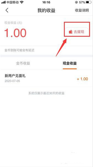 4、点开后在页面里点击去提现;