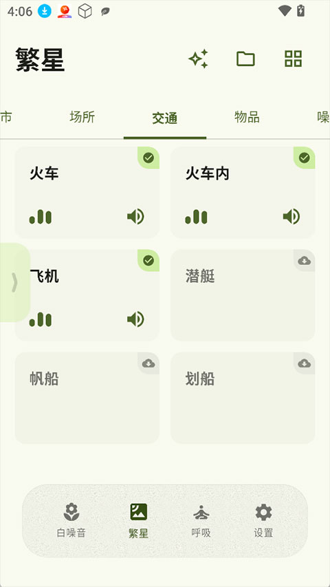 3、app中几乎可以模拟任何场景下的声音,让用户能够根据自己的需求自行调节
