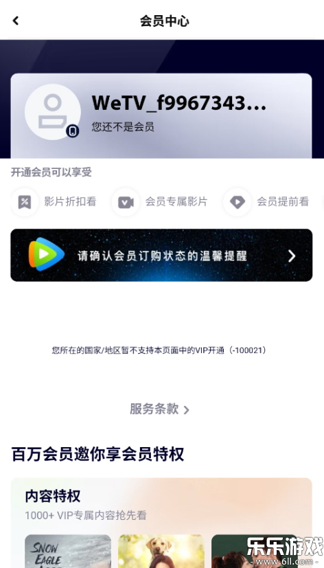 2、登录账号后可以看到“您所在的国家/地区不支持VIP服务”;