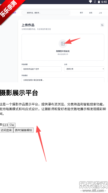 3、按提示上传图片完成摄影作品编辑,点击保存发布分享即可。