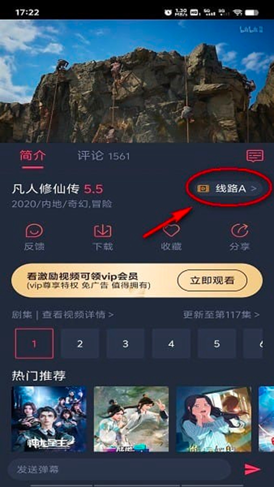 点击要播放的动漫进行观看,在简介下面动漫名字后面有个选项,如图所示,这个就是切换线路的地方;