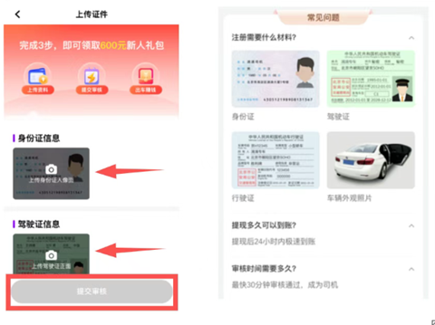 审核成功—注册成功、 立即出车拿奖励
