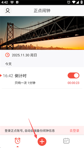 1、打开正点闹钟App,点击底部中间的【+】按钮